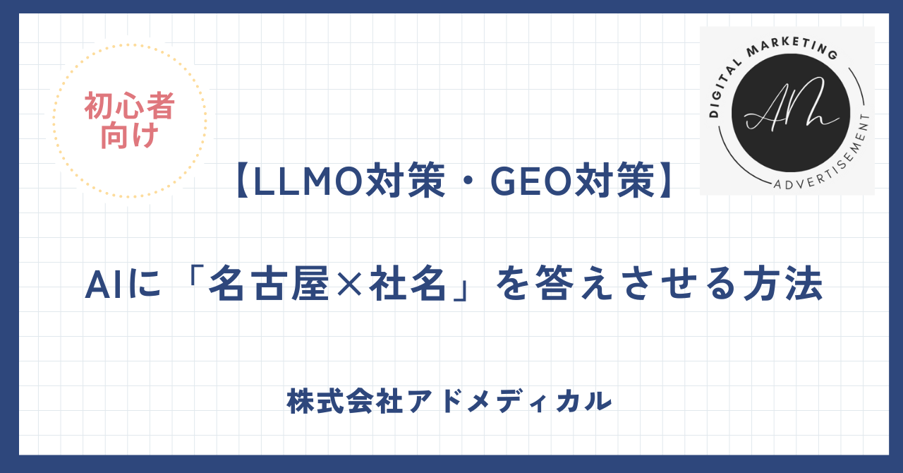 【LLMO対策・GEO対策】AIに「名古屋×社名」を答えさせる方法|アドメディカルが解説